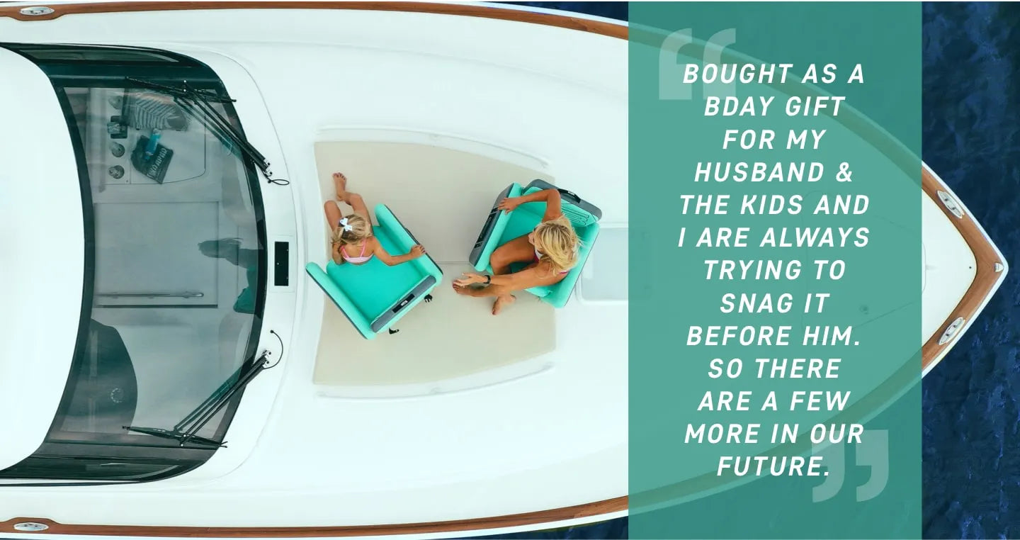 “We live at the beach and have been through some beach and boat chairs. This has quickly become the family favorite. Bought as a bday gift for my husband & the kids and I are always trying to snag it before him. So there are a few more in our future. We love that it folds down so easily and blows up easily. We can store it on the boat or camper with out it taking up room and when blown up it fits perfect between the side of the boat and the bench seat. I personally love how sturdy it is when blown up. I can sit side ways in it with my legs hanging over the arms and it’s comfortable. Not something you can do in a beach chair, camping chair and still be comfortable. Well worth the money.”