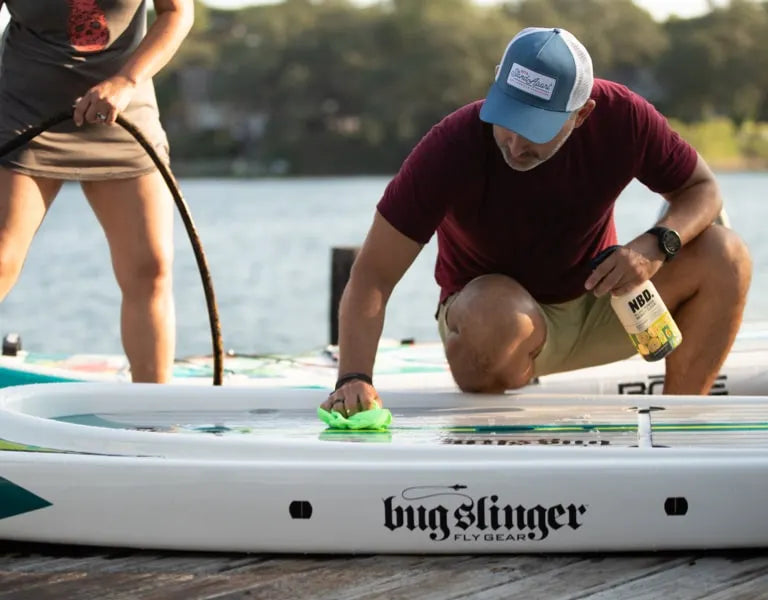 Always rinse your paddle board with fresh, clean water after a day on the water. Wash the board with fresh water and wipe it dry or allow it to air dry for a couple of hours before storing it. As you clean the board, take note if you see dirt beginning to build or bubbles forming on the deck pad, or smudges along the Gatorshell epoxy hull.
