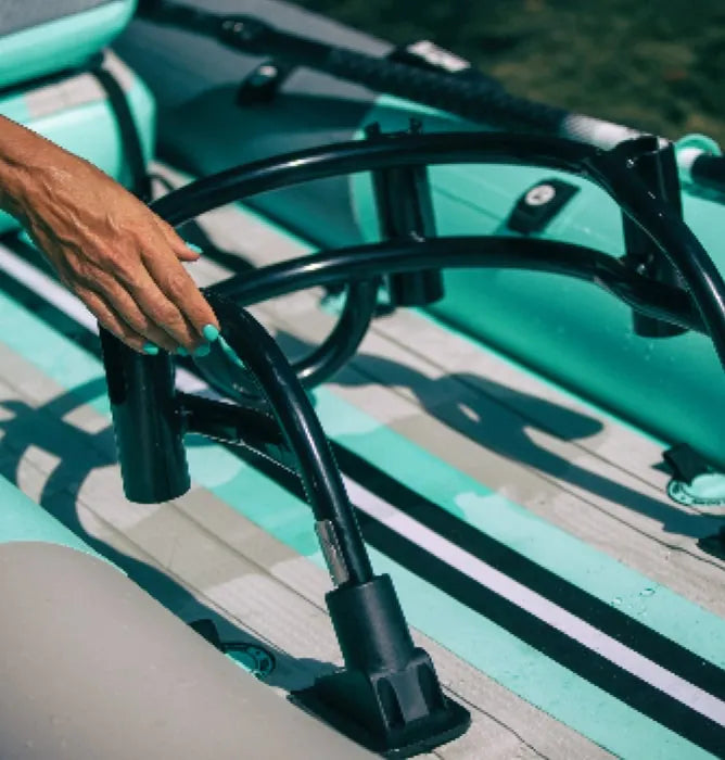 Slide-In Rac Receivers - The Zeppelin comes equipped with slide-in Rac Receivers so you can quickly add on any of our Rac compatible accessories, like a Bucket Rac, ensuring it’s securely placed while you get your paddle on. The Rac Receivers are meant for single-seat use but fear not; we have a way to store your cooler when operating tandem.