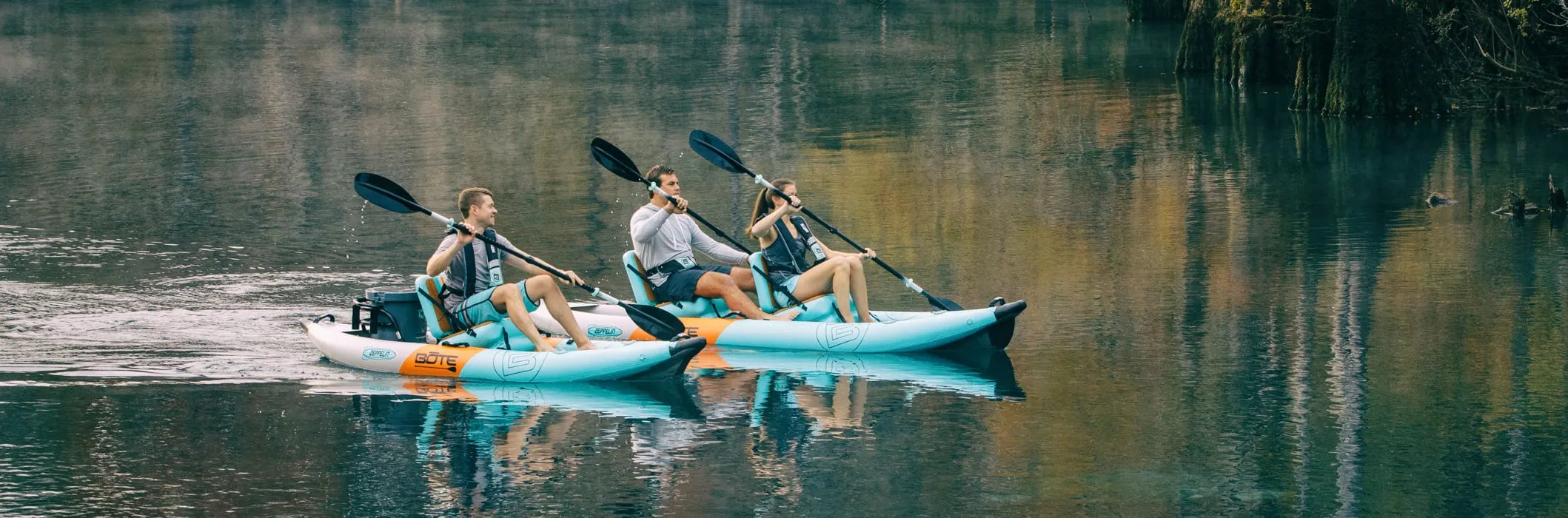 Today, BOTE’s lineup of inflatable kayaks offers everything from an angler’s personal dreamBOTE to an everyday, easy-to-use, recreational water vessel. Because no two paddlers are the same, why should their kayaks be? This brings us to our newest innovation, the redefined and recently expanded Zeppelin Aero family of kayaks. Initially launched in early 2021 with the Zeppelin Aero 12′6″, this single-to-tandem transformative inflatable kayak eliminated the need to choose between the two seating options simply by accommodating both. Even better, it now comes standard as a tandem kayak, with the option to go single with just a few shifts and clips of your Aero seat. Prefer a smaller, solo-only setup? New as of January 2022, the Zeppelin Aero 10′ single-seater is now a crucial element in BOTE’s kayak lineup.