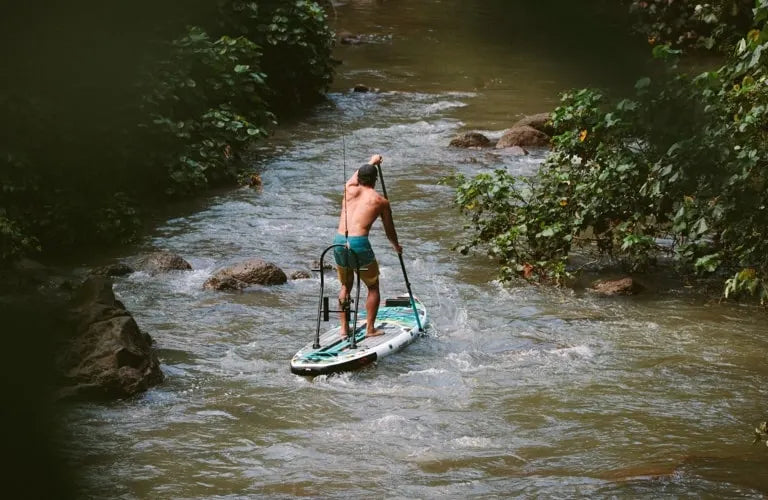If you’re all about the lifestyle but want something that’s packable and portable, the HD Aero Inflatable Paddle Board is the best inflatable SUP for you. Just like the GatorshellTM HD, this inflatable SUP is compatible with all of the fishing attachments you need to get on the water. Do-it-all meets grab-and-go with this board, making it hands-down the best inflatable paddle board for paddle board yoga, morning paddles with your young ‘un, and packing down with a cooler and furry friend.