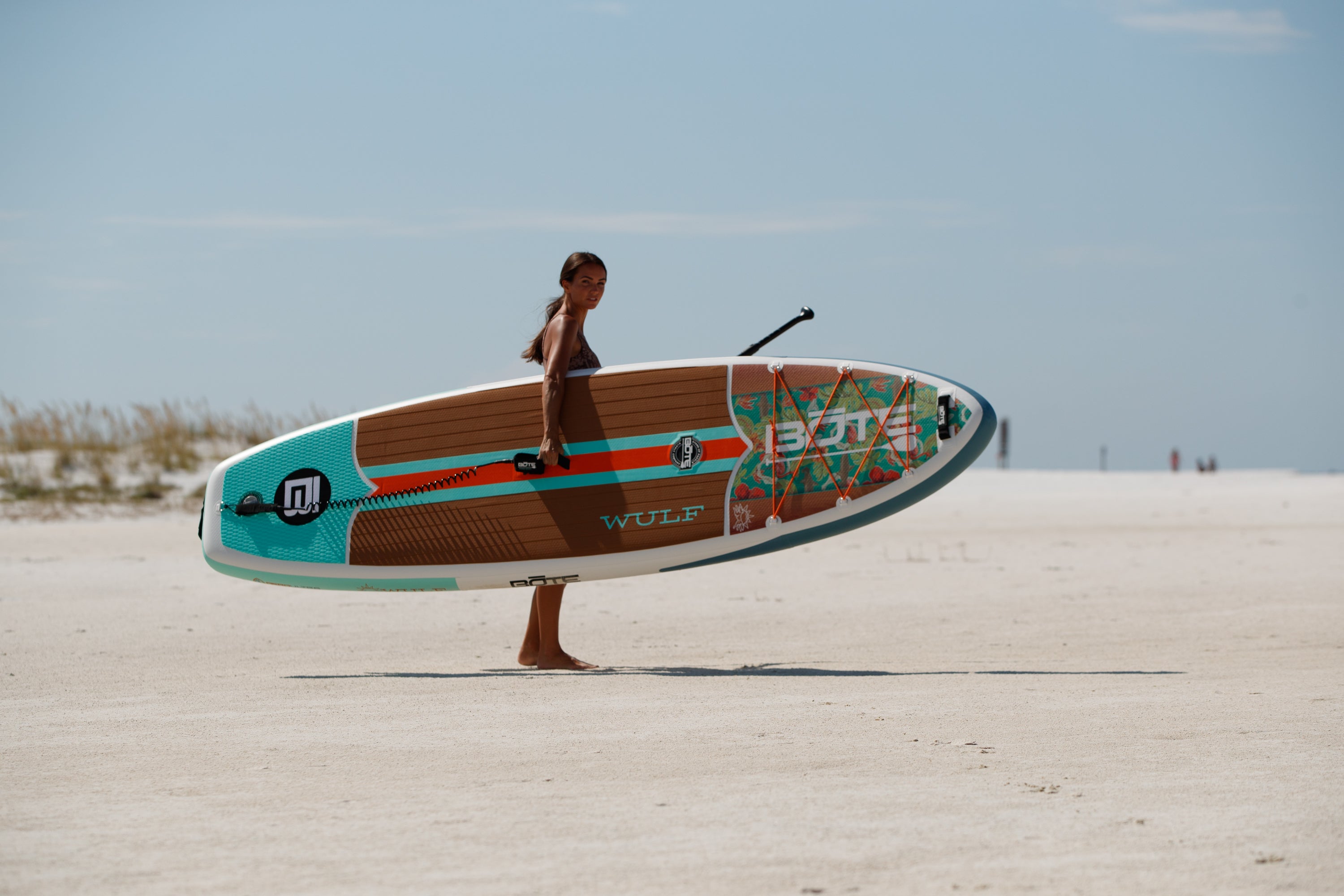 What do you get when you distill a decade’s worth of research and testing into one simple, easy-to-use package? The WULF Aero 10’4” Inflatable Paddle Board. The perfect entry-level inflatable stand up paddle board, the WULF Aero is designed with a wide deck for stability, super lightweight AeroULTRA Technology (single-layer PVC for reduced weight without compromising durability) for portability, and essential accessories like a coiled leash and travel bag. A beginner-friendly package at a wallet-friendly price, the WULF Aero Inflatable Paddle Board is the perfect voyage into the SUP space.