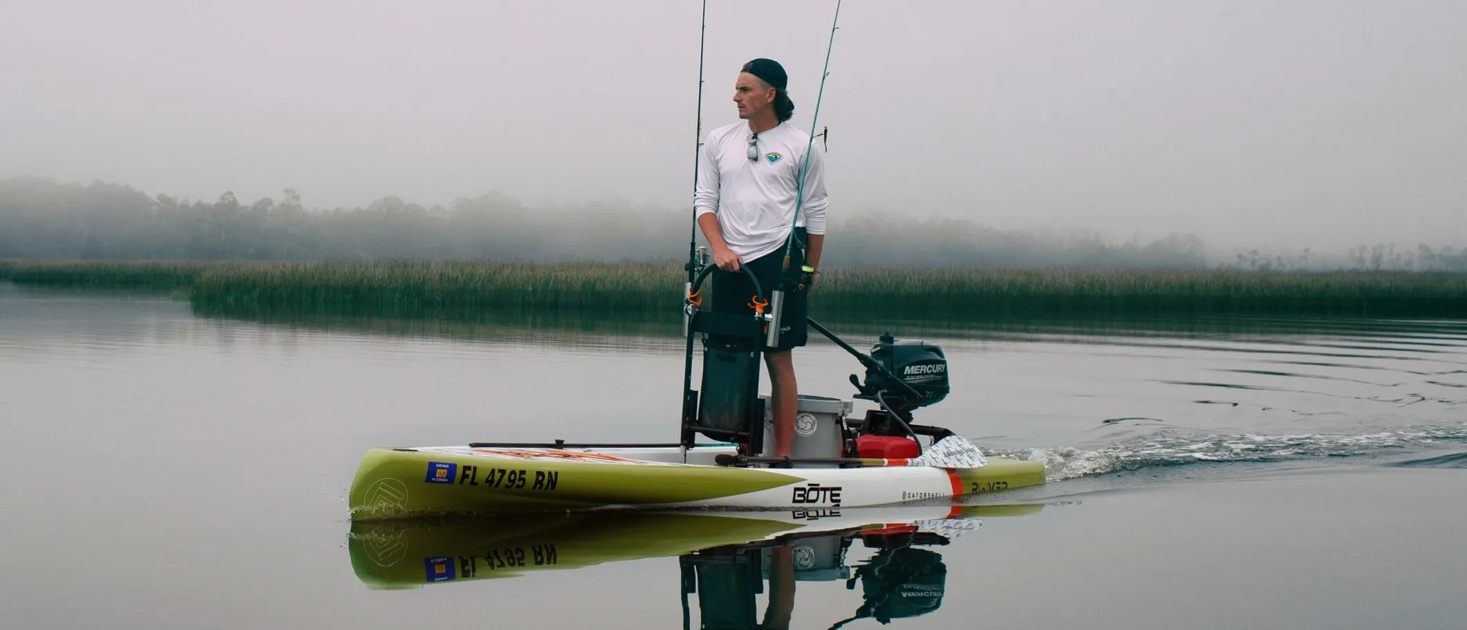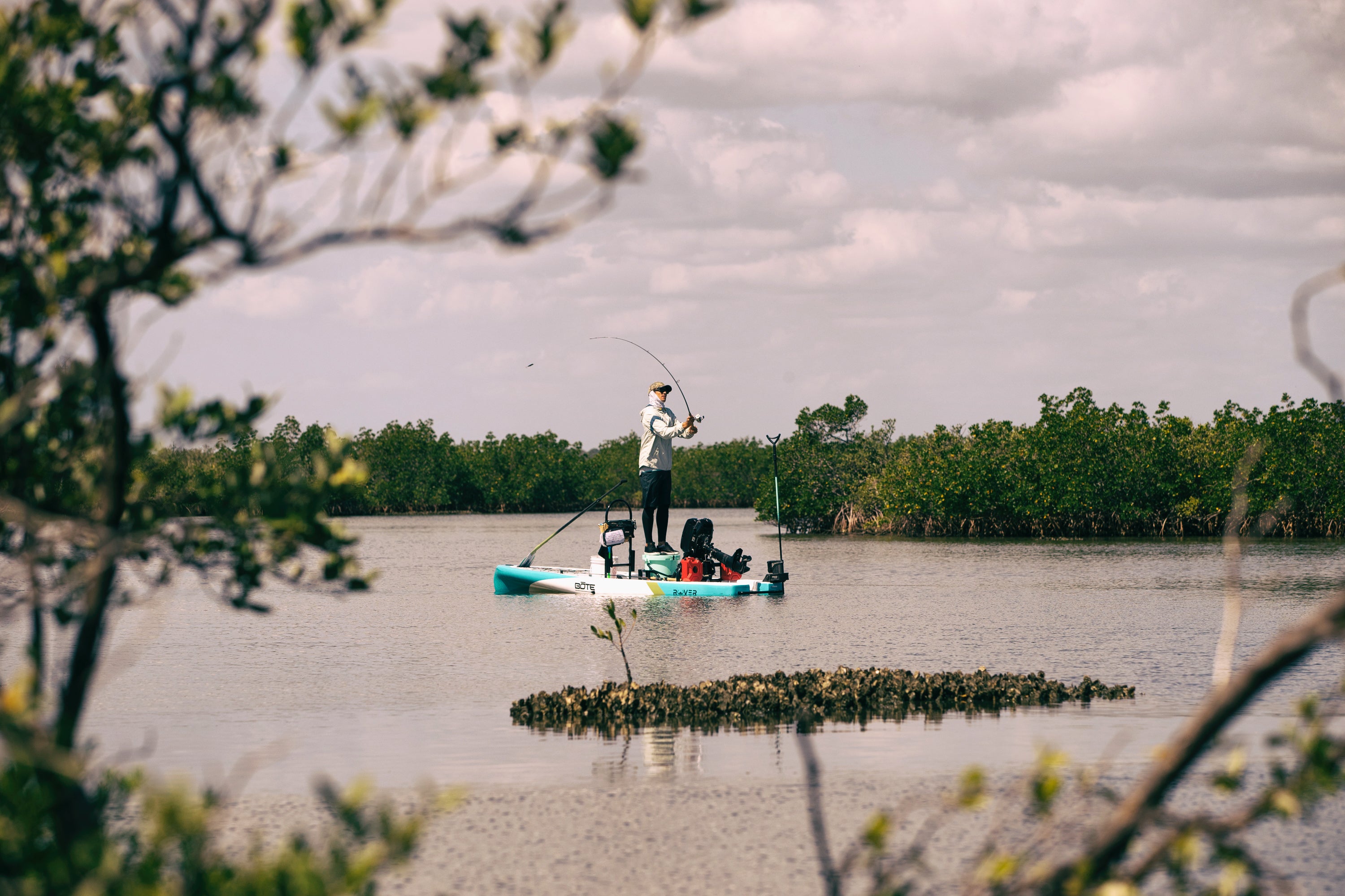 BOTE Micro Skiffs allow the rider to get super shallow, be really stealthy, and have a simple approach to fishing. Designed to be paddled or motorized with an outboard motor, a micro skiff transports you to even the gnarliest honey holes. Turn the power on to cruise across large bodies of water, then cut it and start paddling to ease through the shallows without disrupting what’s happening beneath the surface.