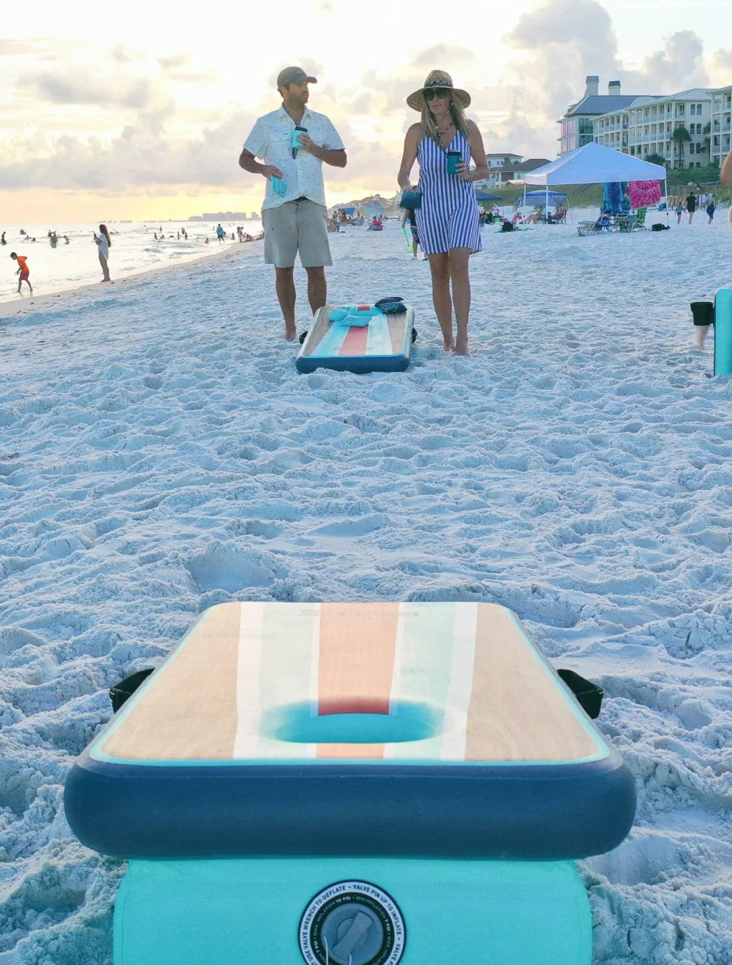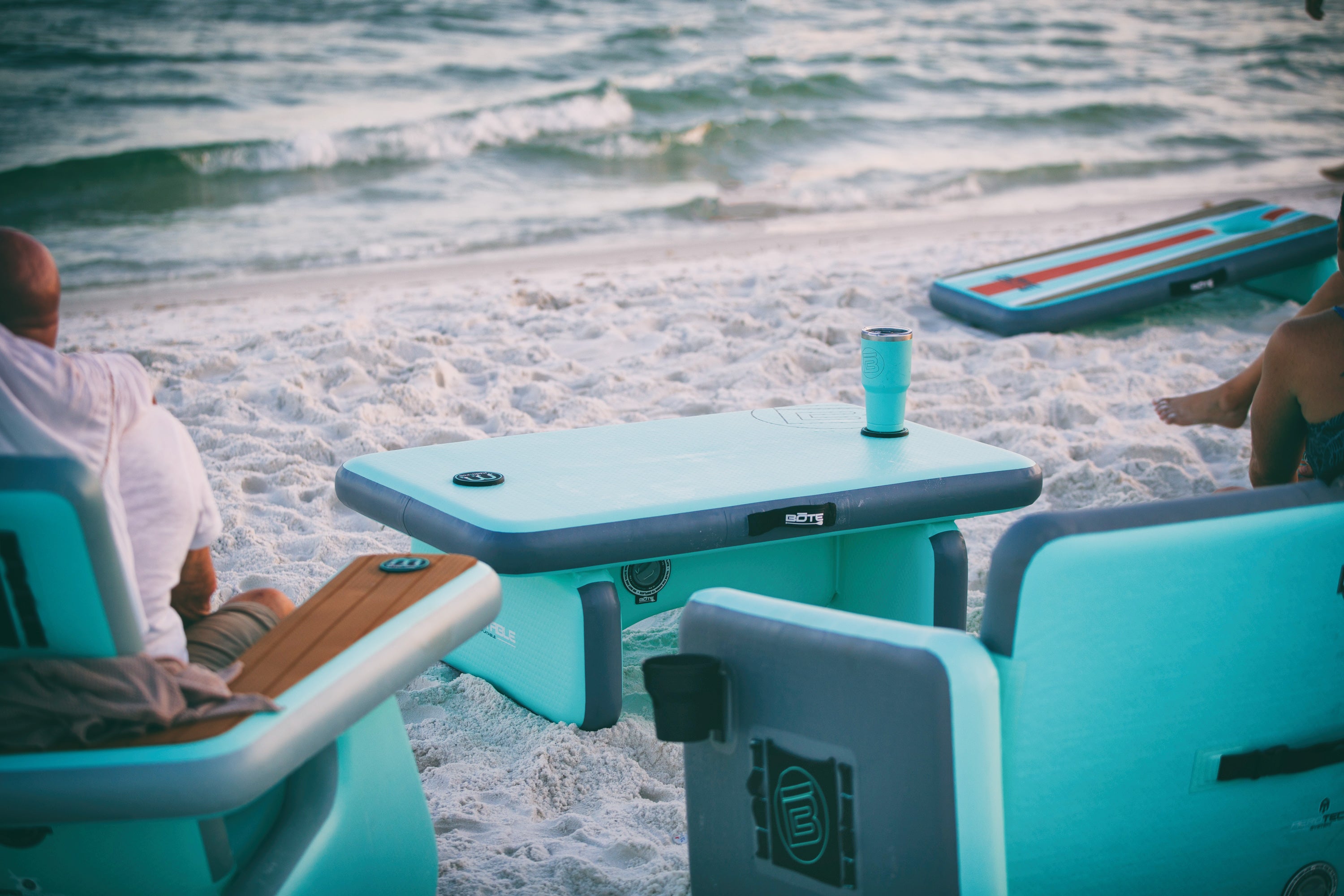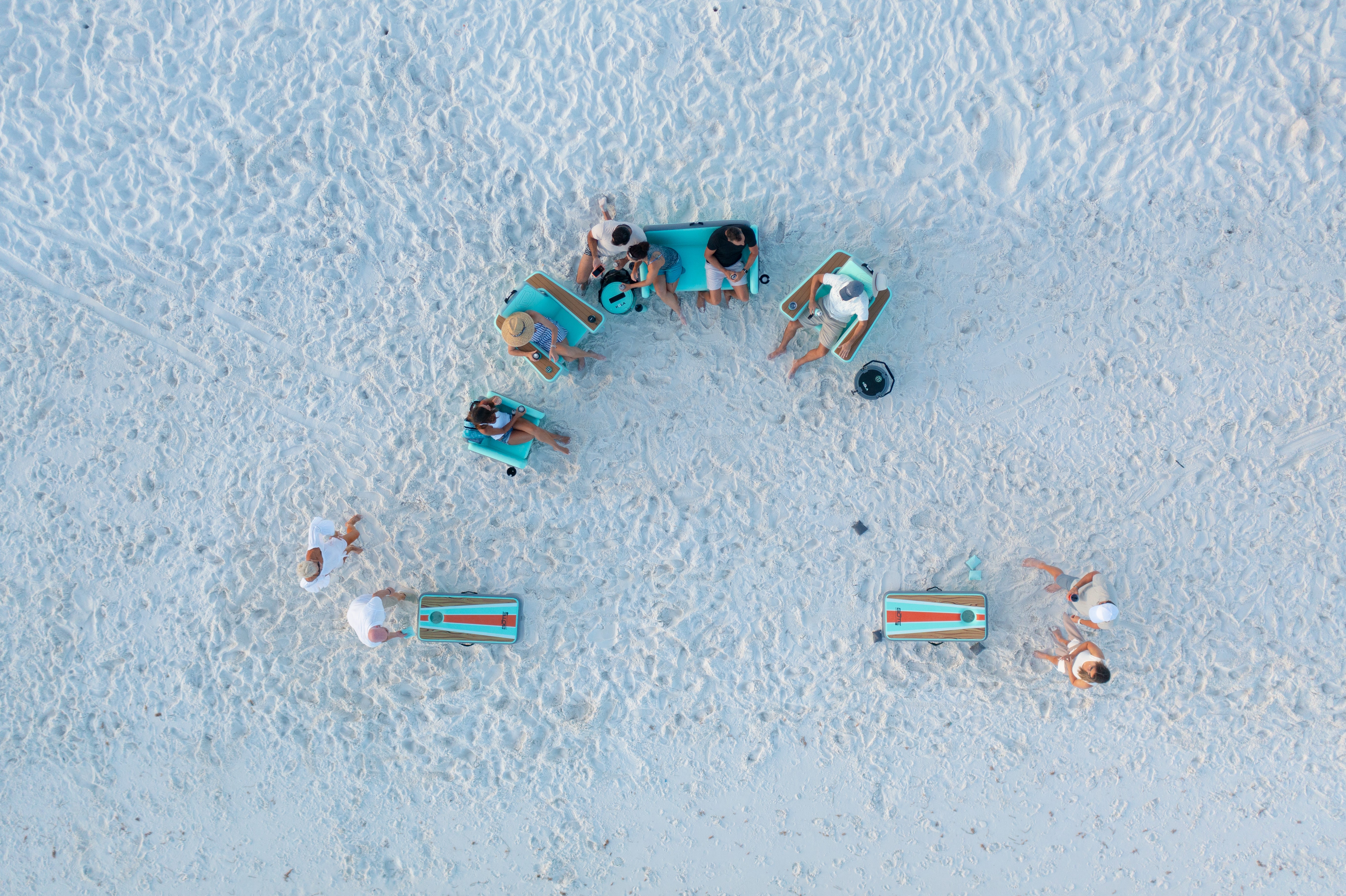 Still checking all the boxes for portability, storability and durability, we’ve expanded beyond an inflatable couch and chair. Three newly released products come together to make up the full-on outdoor furniture and games collection—the Aero Lounge Suite.
