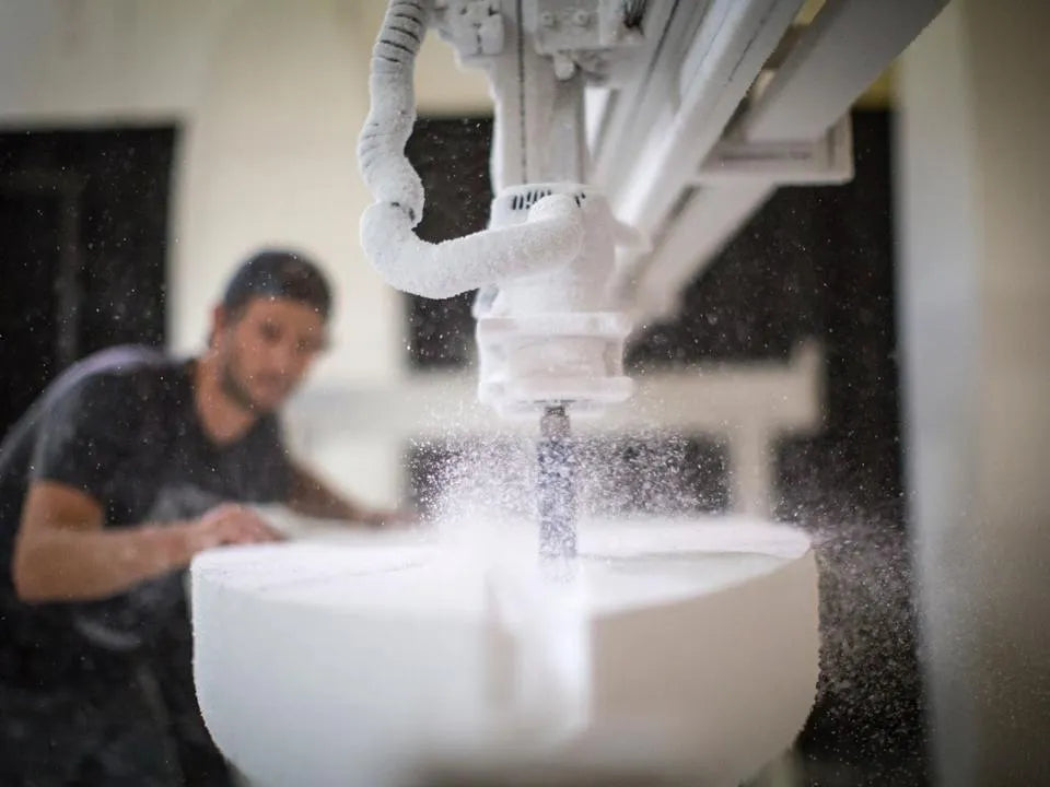 4-Axis CNC Mill with a 17' capacity and an accuracy of 1mm has virtually limitless capabilities to carve rough shapes from foam blanks.