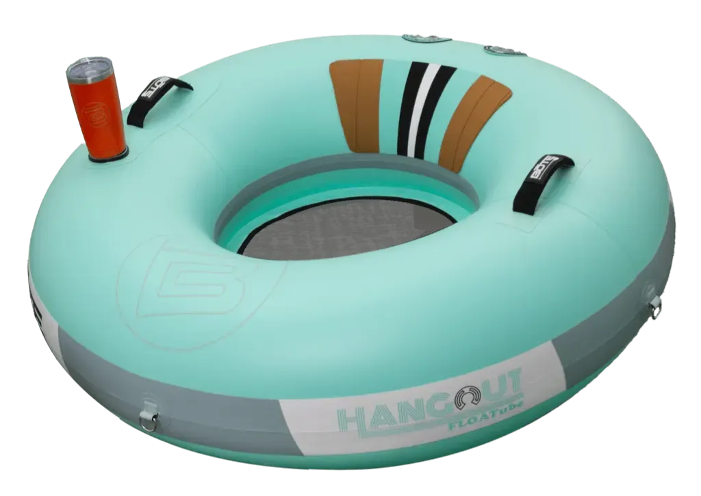 Traditional river tube with some game-changing innovations. We’re talking: BVA padding for your back, a MAGNEPOD™ attachment point for your drink, PRV – pressure relief valve – so your tube never over-pressurizes, D-rings to lash to your friends, or to lash to the Hangout Bar (or other Hangout products), and mesh netting underneath, so you stay comfortable and supported.