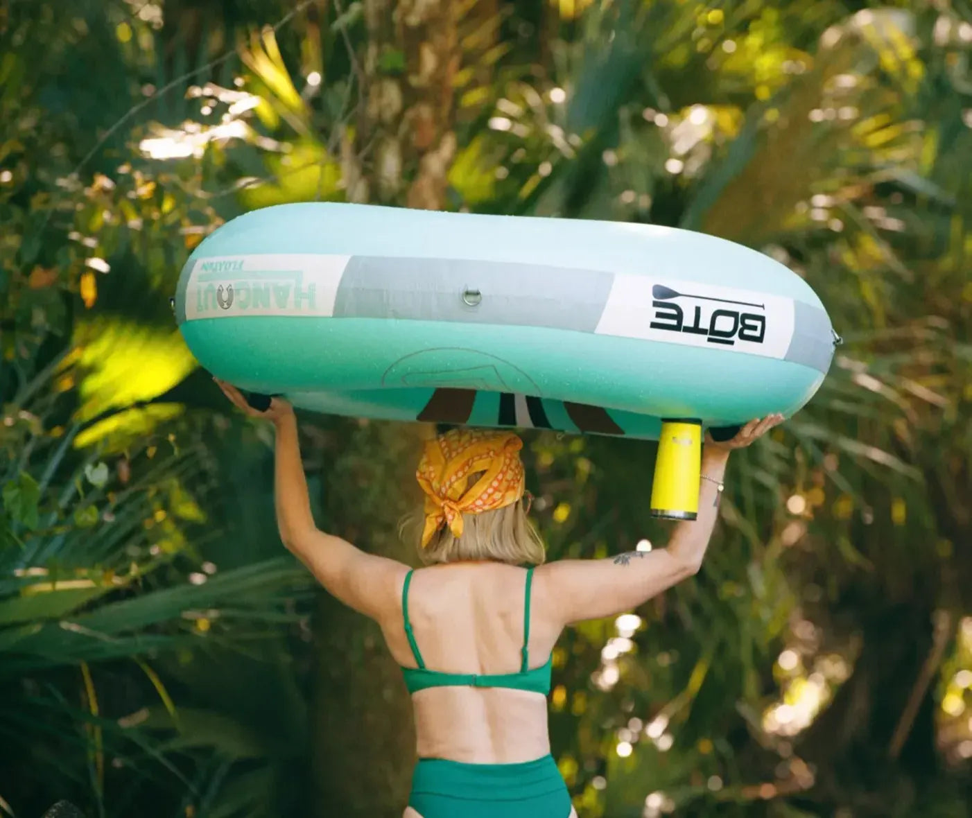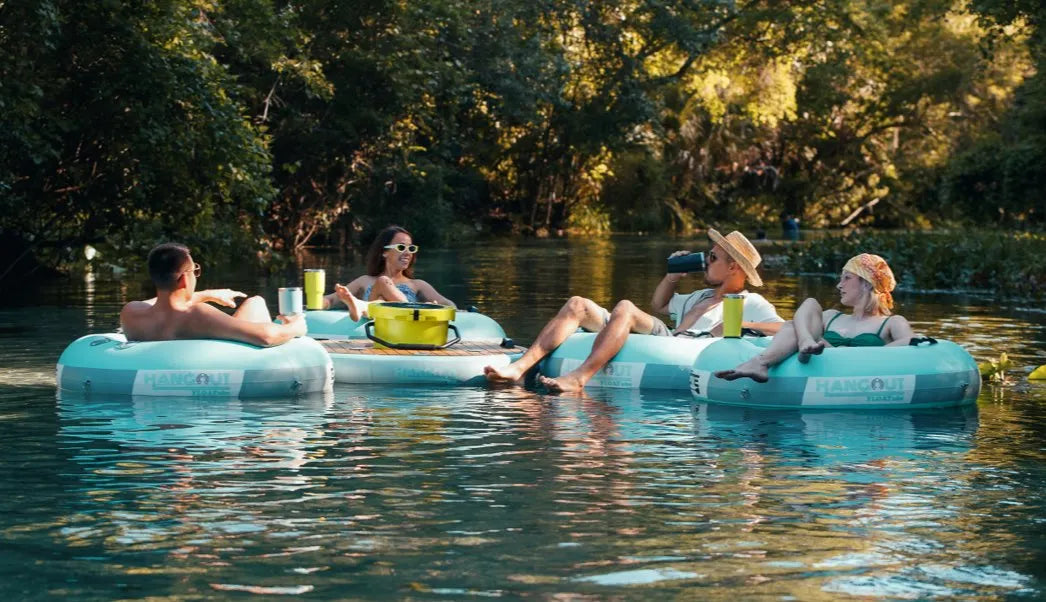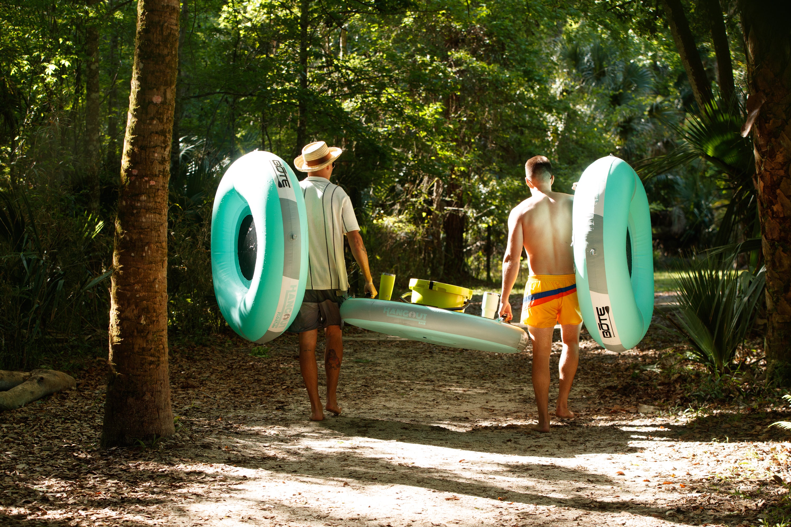 Traditional river tube with some game-changing innovations. We’re talking: BVA padding for your back, a MAGNEPOD™ attachment point for your drink, PRV – pressure relief valve – so your tube never over-pressurizes, D-rings to lash to your friends, or to lash to the Hangout Bar (or other Hangout products), and mesh netting underneath, so you stay comfortable and supported.