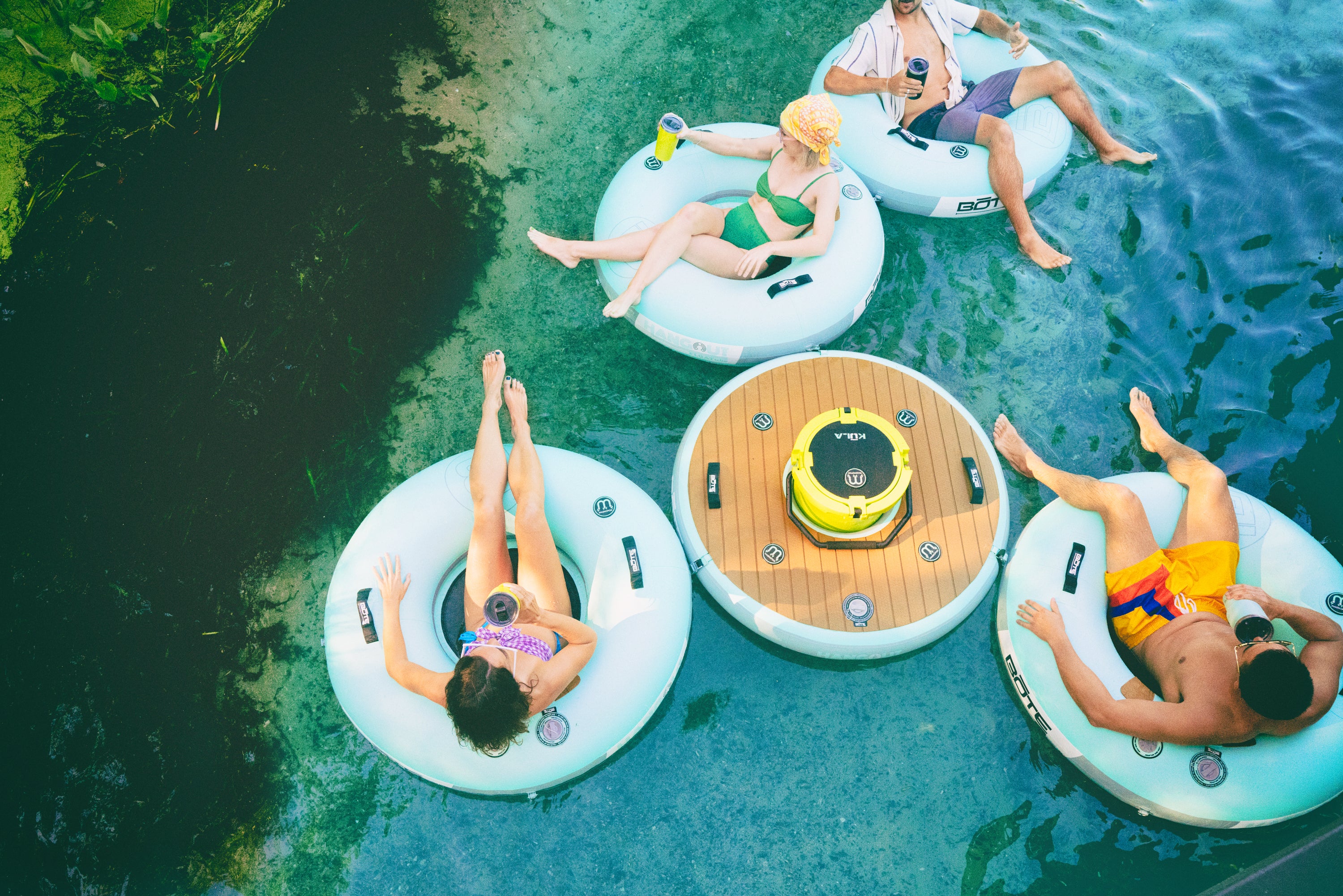 Sometimes it’s less about a float for you and more about a floating table. The Hangout Bar built to perfectly hold a KULA 5 Cooler in the middle and features 4 MAGNEPOD™ attachment points to keep your drinks from falling over.