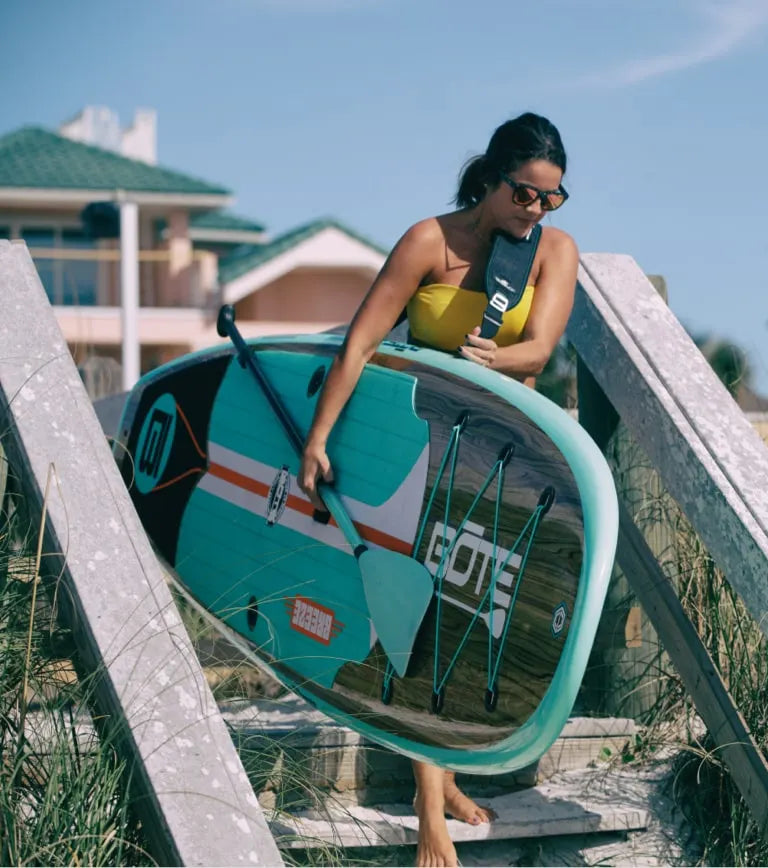 So, you're not looking for something serious when it comes to paddling adventures? The Flood Stand Up Paddle Board is seriously the most excellent board for non-serious paddle excursions there is. By which we mean, if leisure is your M.O. and chillin' your greatest talent, it's high-time you check out the Flood. Which isn't to say this board isn't durable or versatile. On the contrary, it's extremely tough, patented with Gatorshell construction. And due to its volume, length, and 'surf style' shape it can also handle waves and even choppy waters. But at the end of the day, what this board is really about is fun. Pure, unadulterated, casual fun. It's incredibly maneuverable and makes for a great way to get out on the water with family and friends.
