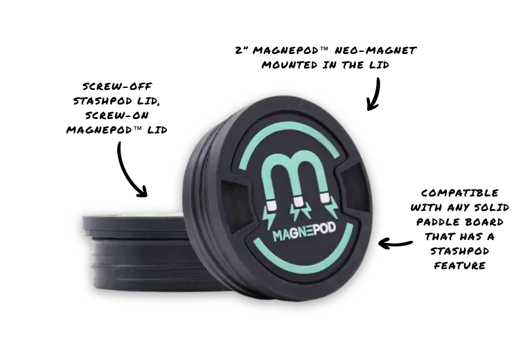 For all of you solid paddle board owners that want to take advantage of our MAGNEPOD™ accessory lineup, we've got you covered. Swap out your current Stashpod lid for a MAGNEPOD / Stashpod Lid and reap the benefits of both drink storage systems.