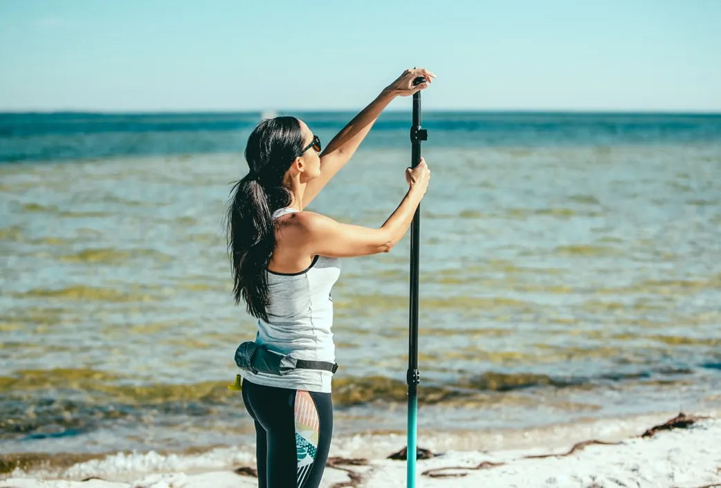- For a multi-piece adjustable paddle, adjust to the correct length by sliding it to the correct height for you and moving the latch to the locked position.