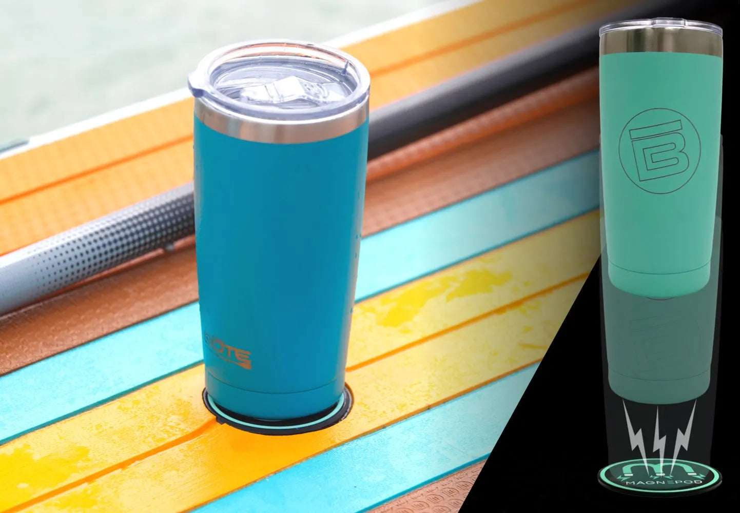 The MAGNEPOD™ magnetic base is a revolutionary, tool-less drink retention system that makes securing your BOTE magnetic drinkware a snap.