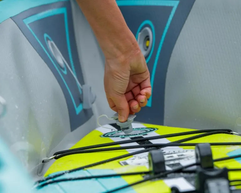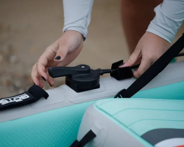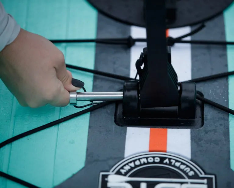 A 6" center fin that is removable with tethered attachment pin that allows for ease of transport and storage.