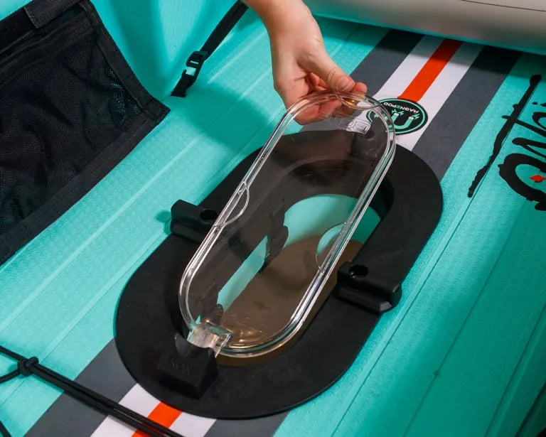 The Pedal Port features a clear removable cover that allows for the LONO Aero to be fitted with the sold separately Apex Pedal Drive unit, converting the LONO from standard kayak to pedal driven kayak.