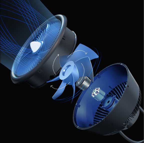 MAX COOLER is equipped with the new motor technology and the AIRVORTECH™ technology of advanced aerodynamic mechanism. With a unique kernel design, its performance is far exceeding the ordinary motors. Soft running, gentle at low speed and glide at variable speeds. It provides powerful airflow (up to 5 m/s) with the lowest noise (less than 30db) that can achieve a quiet fan but also consumes less power during operation to save energy. Generate stronger wind with less power consumption.