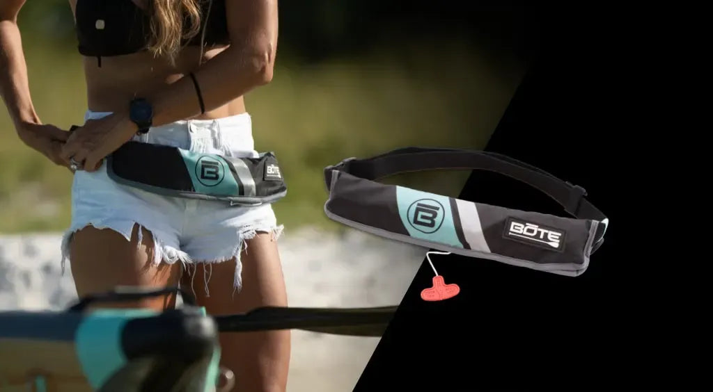BOTE Inflatable Belt PFD is a unique design that keeps stand-up paddleboarders (SUP), anglers, boaters, and other paddlers safe without compromising movement.